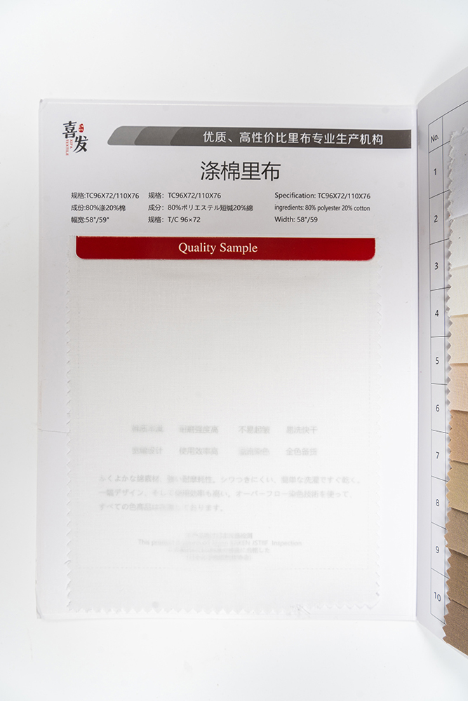 温馨提示:因其为棉纤维和涤纶纤维混纺布面有细微棉结属于棉制品正常风格当用于口袋布以及里料以外部位时请务必在进行实验后使用。